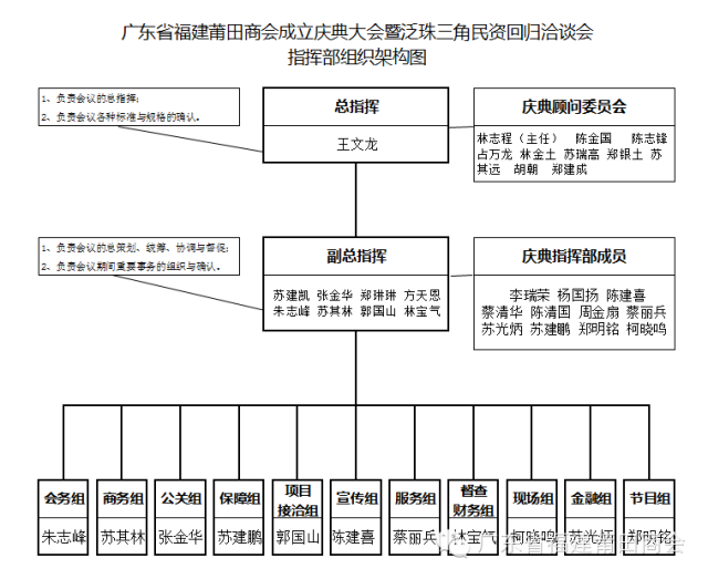 广东省福建莆田商会成立庆典大会暨泛珠三角民资回归洽谈会筹备会指挥部名单